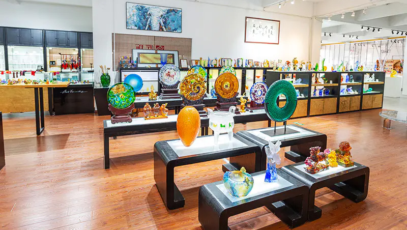 Artificiorum vitrearum gradatim ex traditione artis dona evoluta sunt quae ornamenta ornamenta circumdant, culturam Buddhistam, vasculum crystallinum, et ornamentum celeberrimum. Societas productionis basis sita est in oppido aquae pulchrae et prosperrimae Jinxi in Kunshan, Jiangsu provinciae. Investigationes et evolutionis spatium notat ad productionem vitream quae 35,000 metra quadrata excurrit. Facilitas cum instrumentis independentibus facultatibus instructa, fictilibus technicis exemplaribus, ac technicis investigationibus et evolutionis facultatibus, maturas artes demonstrans in utraque evolutionis evolutione et processu fabricandi.