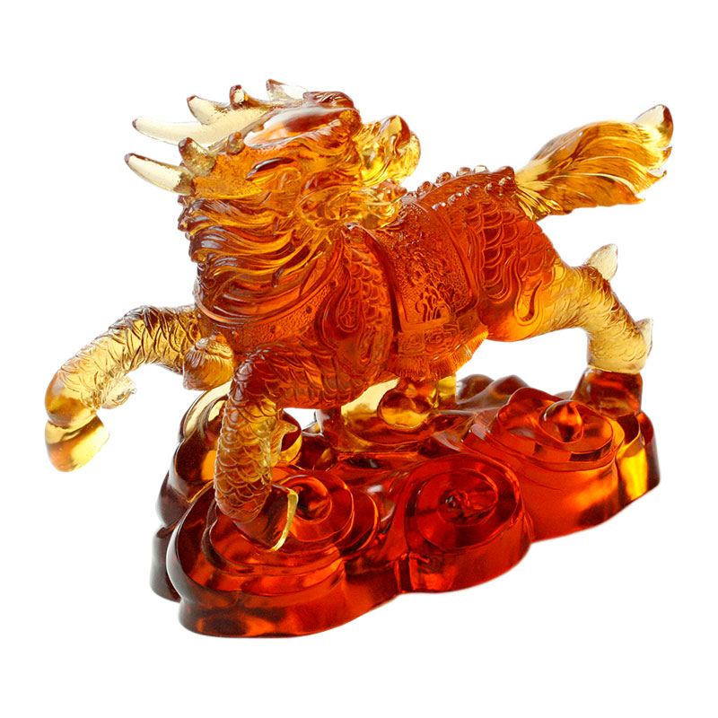 Huius bestiae vitreae figura est viva, et singula subtilissime a facie bestiae ad lineas corporis musculi, et ad caudae positionem elegantem, quae omnes superbas artificis artes ostendunt. Haec bestia vitrea fovet ac tepentem accumsan sono. Color electri magnificum et sollemne complexum dat, quasi bestia custos ex antiqua fabula. vitreum refringet lepidam lucem sub illuminatione lucis, quae hanc bestiam vitream efficit varios effectus visitivos in diversis angulis praesentes, arcano suo suavitati addens.