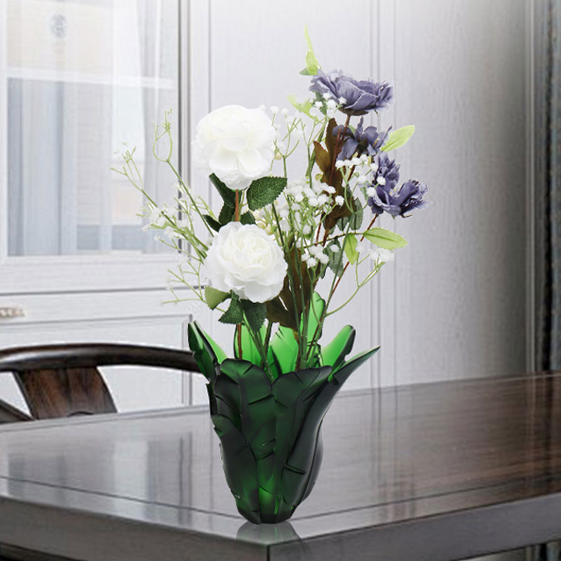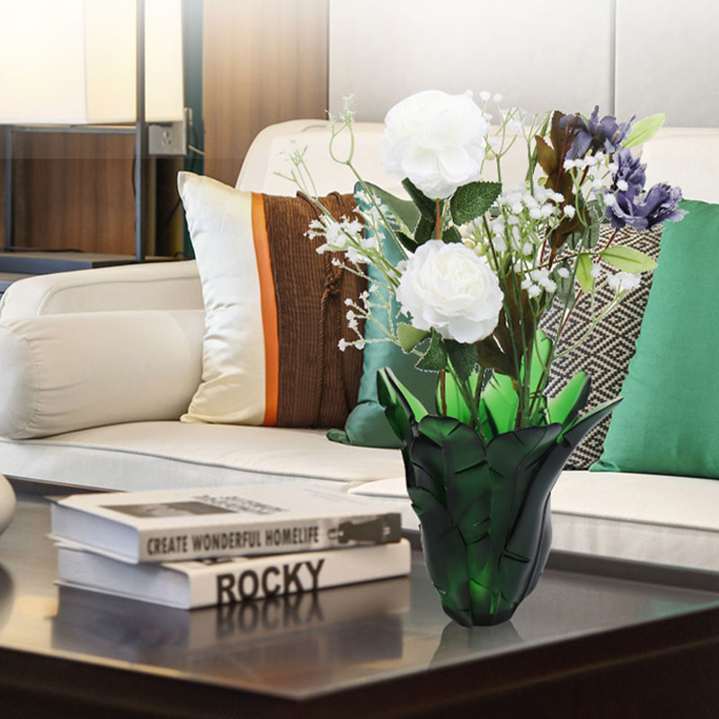 Home / Products / Vasa crystallina / Vitrum crystallinum Vase / Home Decoration Green Banana Leaf Glass Vase