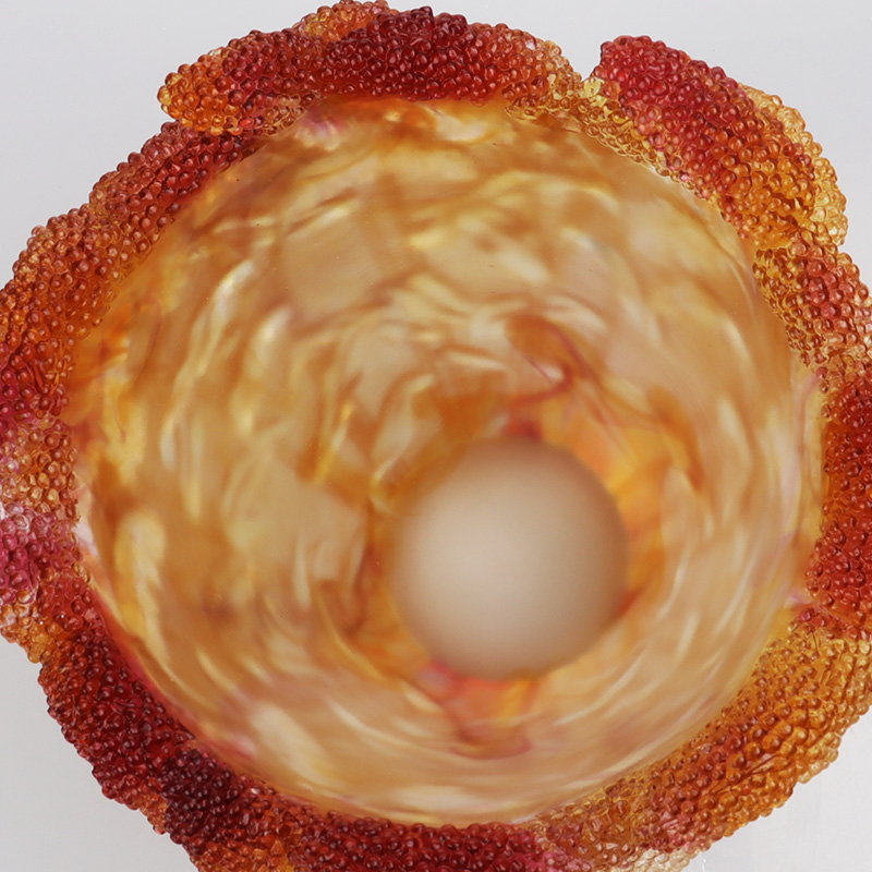 Per ceram iacturam amissam, pigmenta fuse et temperaturis calidis permeant, gradus a divisione mechanica liberantes. Halos electri ubi aurum et rubicundum conveniunt serendipitae sunt collisiones inter elementa aeris et vulvam vitream intra mille gradus fornacem — solem inaequalem plane imitantes nuditatem quae germanam suam texturam praebet. Hoc « chaos moderatum » artificium artificiale infundit vigore naturali — multum simile sorghum quod ventum et pluviam sustinet, apricis in sole, ac demum suos colores in aperto campos excolit.