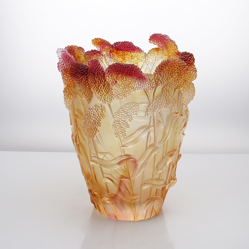 Messis tandem stat uti "expressio hodiernae traditionis": spiritalis essentia sorghum per vitreum translucentiam reviviscatur, dum colores clivosi tempore utuntur ut peniculus ad poeticam agriculturae pingendam. Cera iactura perdita artificia antiqua sopitam in aevo recenti reviviscit. Cum luces sparguntur per vasculum, umbrae spicarum flexibus non solum vitreae claritatem et subtilitatem artificii aperiunt, sed etiam sedimentationem et renascentiae memoriae terrae in aetate — commemoratio messis significat non tantum materialem abundantiam, sed intergenerationem transmissionem culturae generum et efficacem vigorem traditionis artificii in contextu erumpentis.